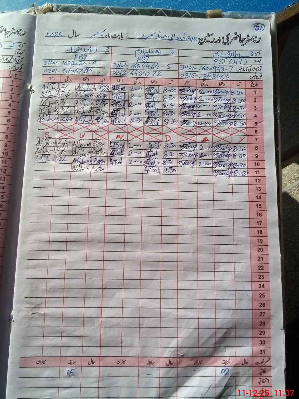 | CNIC | Full Name | Designation | R/C | Absence during last cal. month |