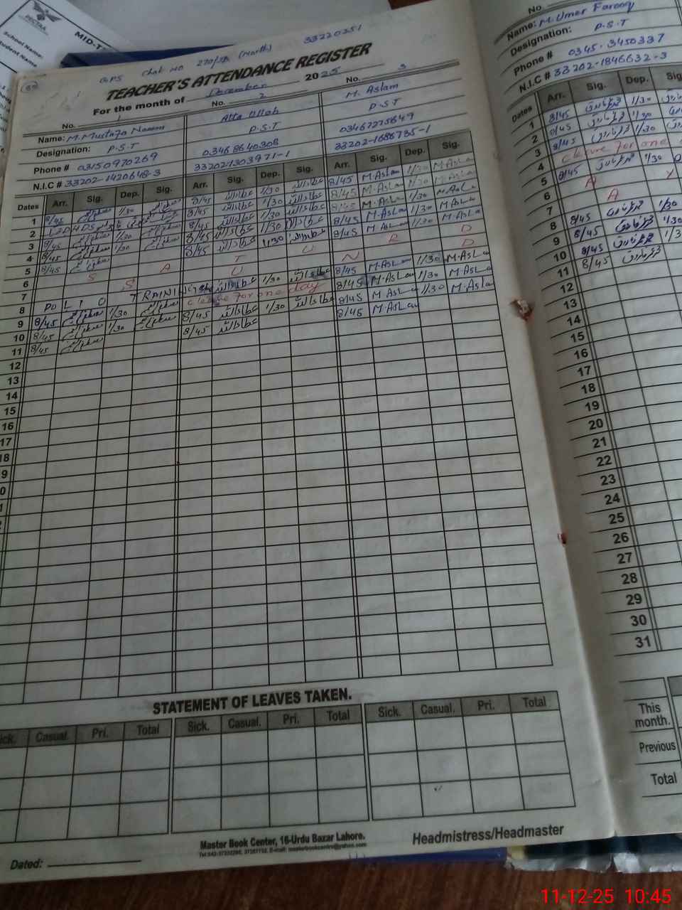 | Name: MU**** MU**** NA**** Designation: (School Headmaster's/Headmistress's) PST Phone/Cell Number: 03**** |