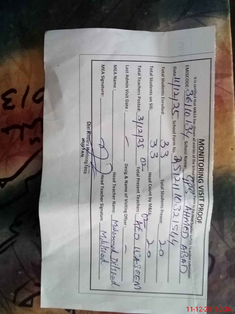 | EMIS Code: 36110134 | Name of School: GPS AHMED ABAD | |||