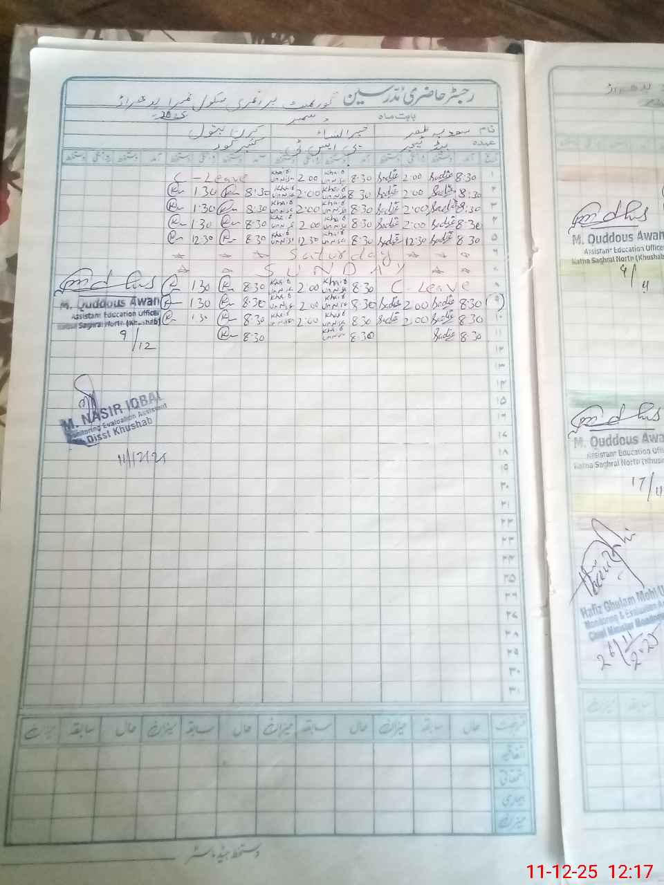 | CNIC | Full Name | Designation | R/C | Absence During Last Calender Month |