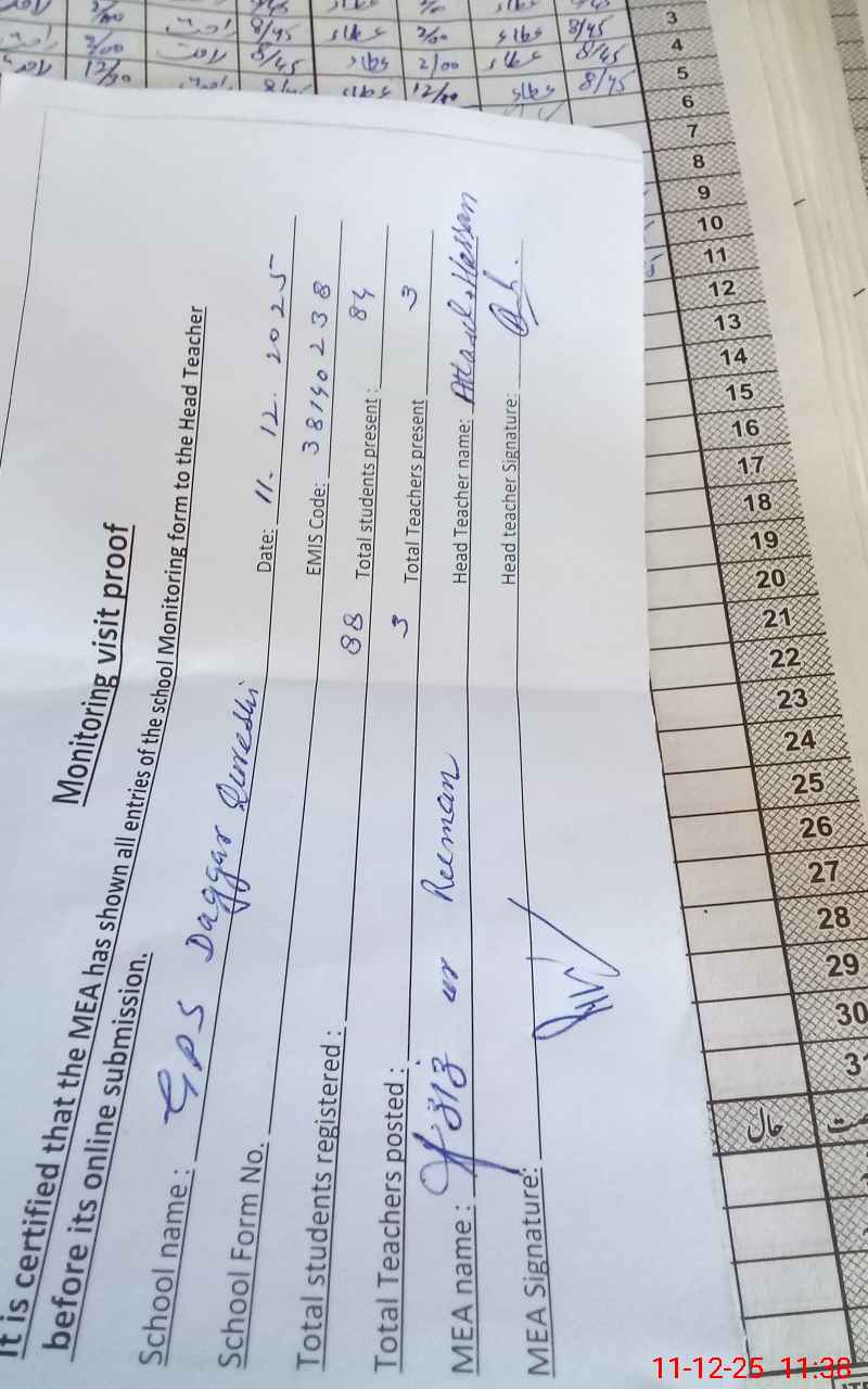 | EMIS Code: 38140238 | Name of School: GPS DAGGAR QURESHI | |||