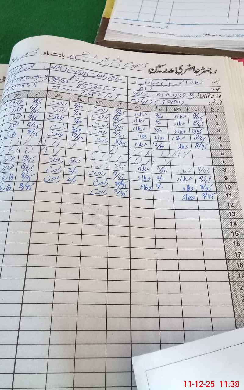 | CNIC | Full Name | Designation | R/C | Absence During Last Calender Month |