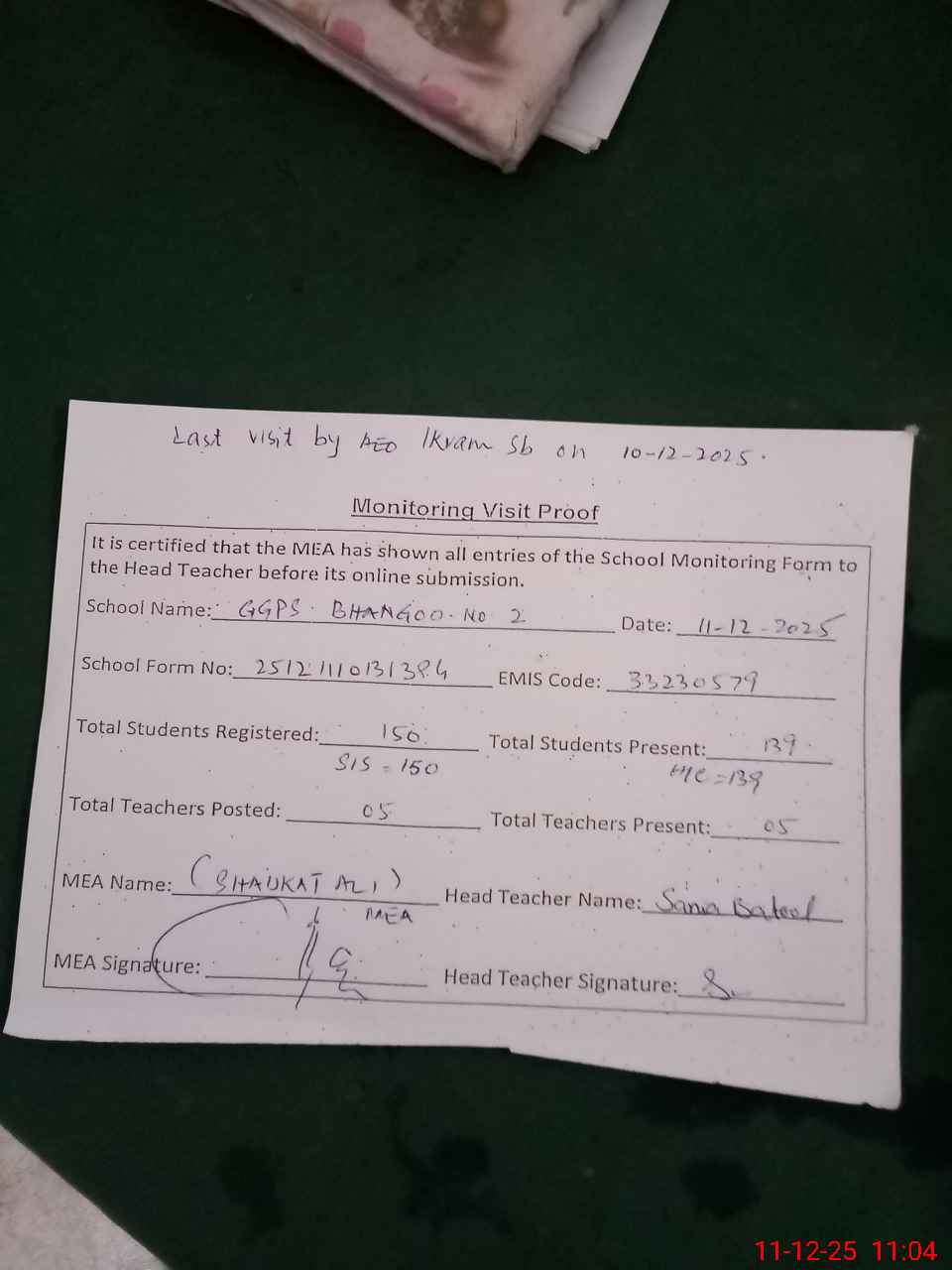 | EMIS Code: 33230579 | Name of School: GGPS BHANGOO NO 2 | |||