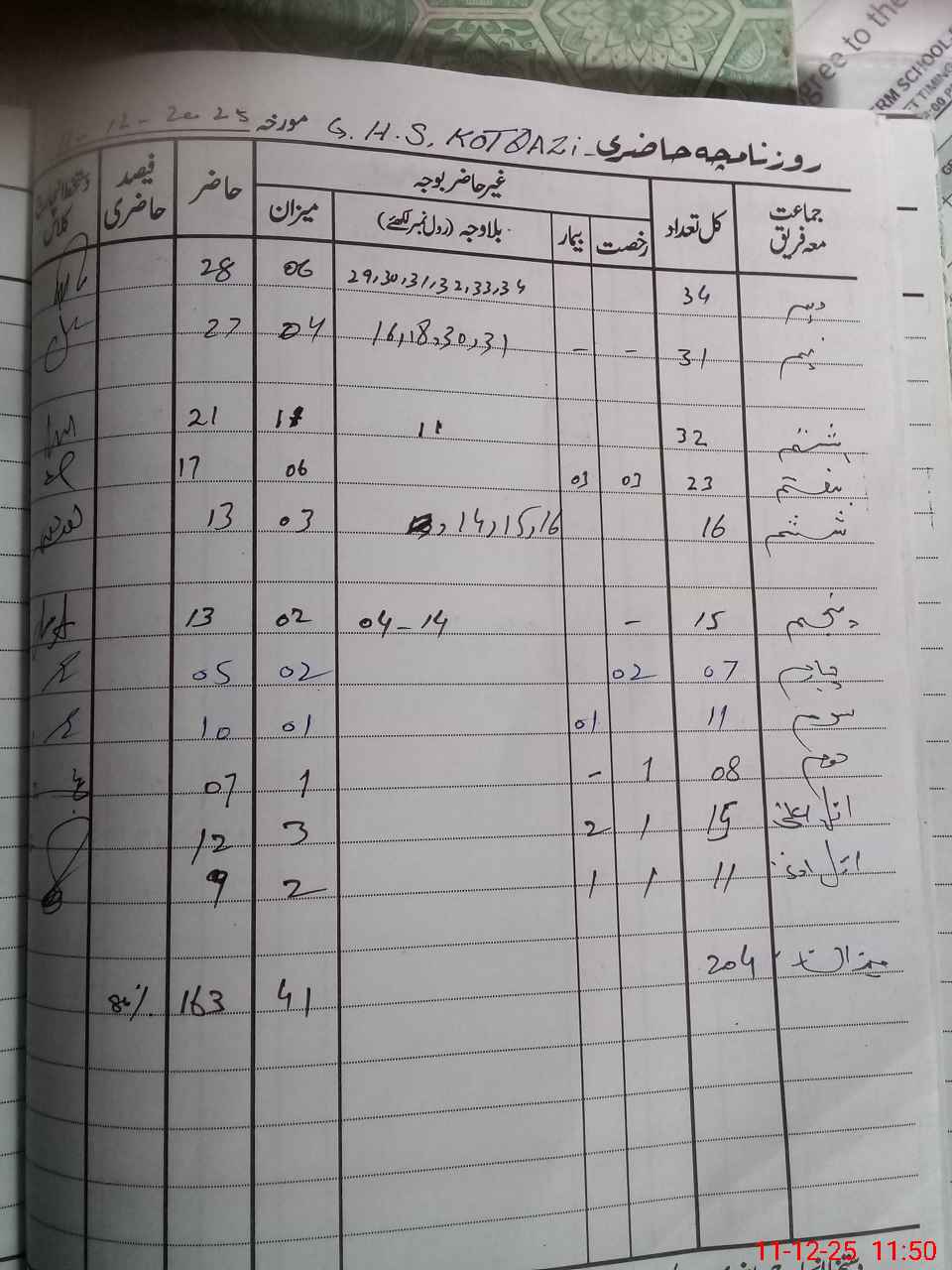 | EMIS Code: 37420019 | Name of School: GHS KOT QAZI | |||