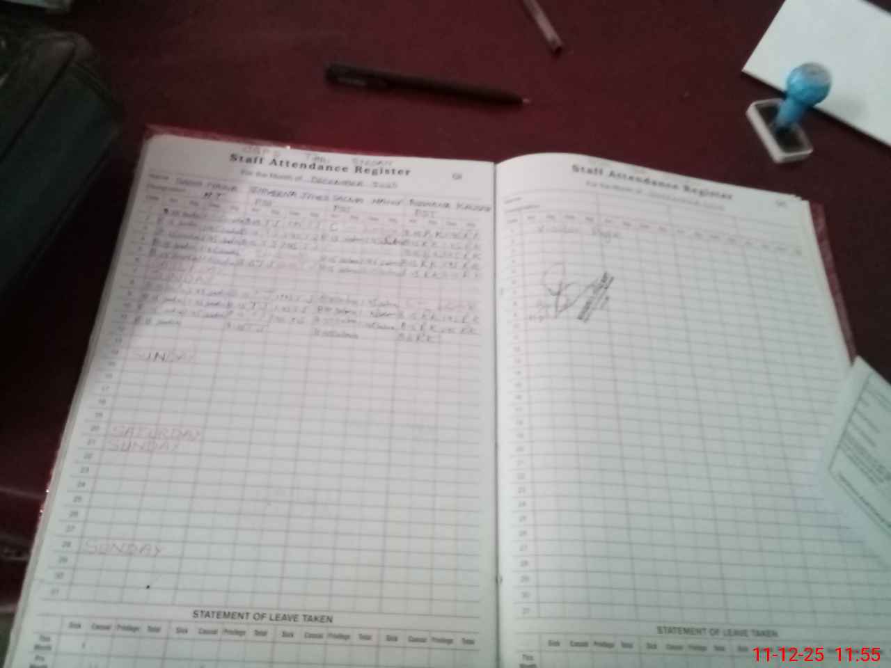 | Leave | Duty | Absent | Maternity | Medical | Ex- Pak |