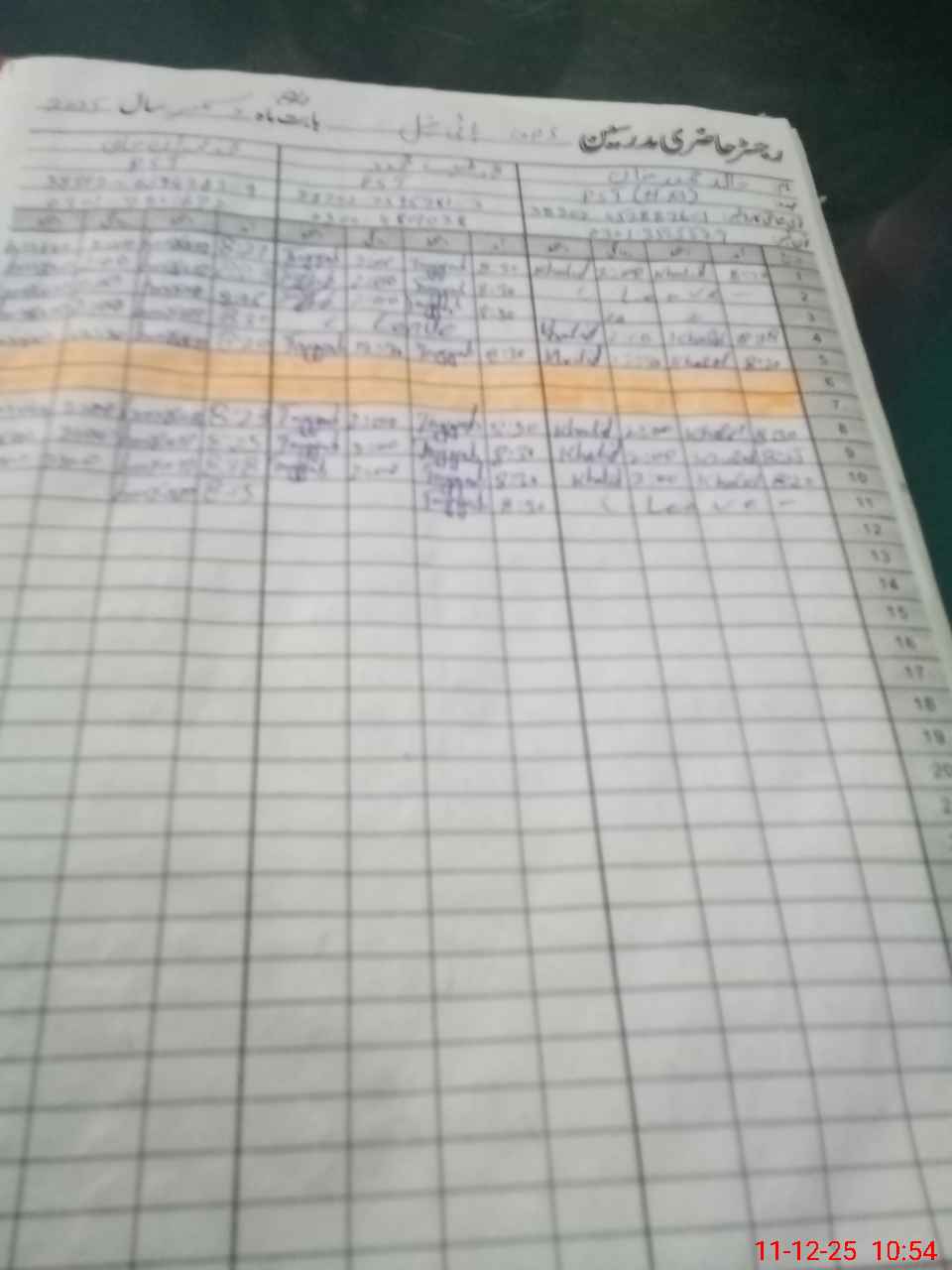| CNIC | Full Name | Designation | R/C | Absence During Last Calender Month |