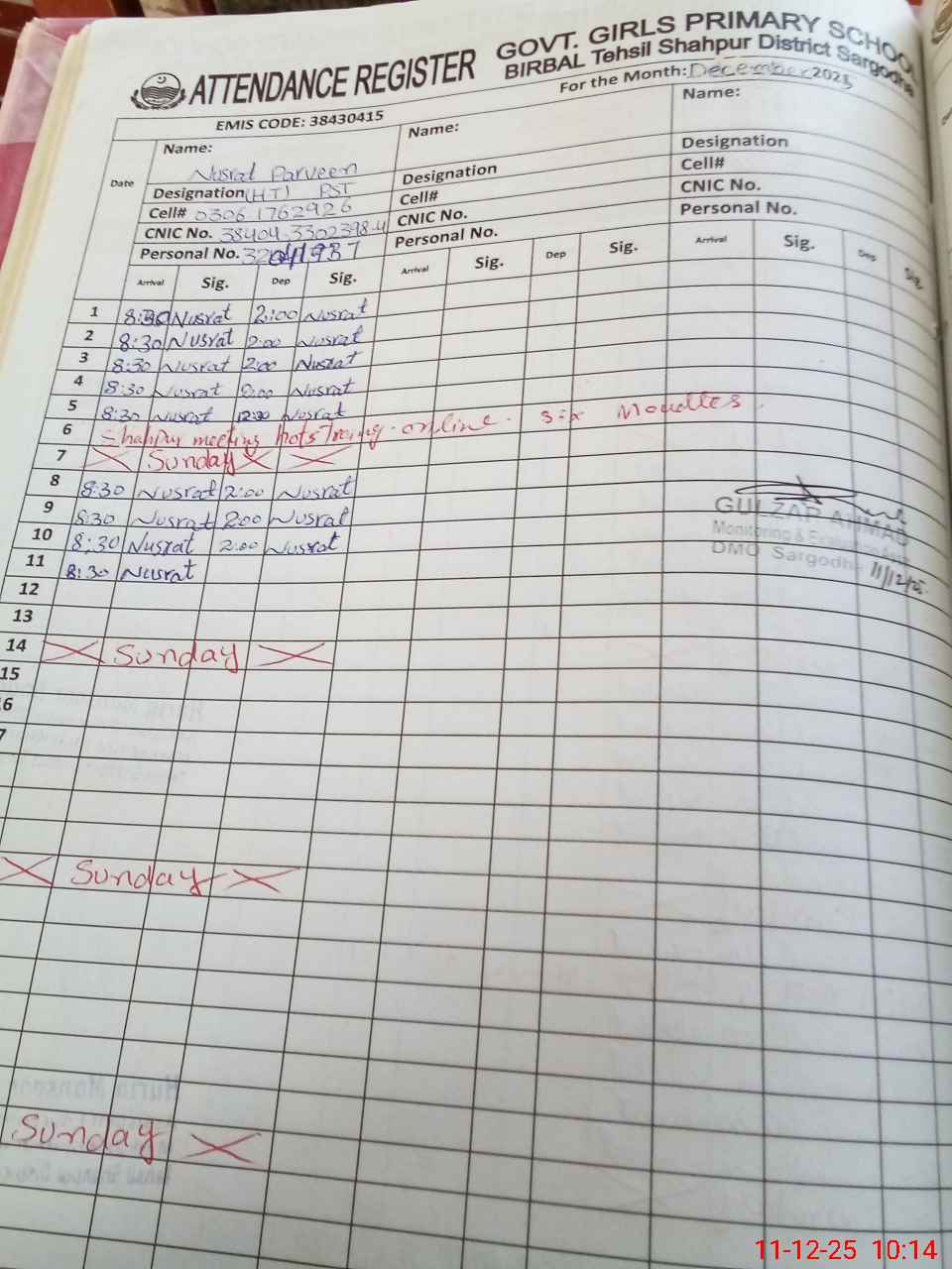 | Name: NU**** PA**** Designation: (School Headmaster's/Headmistress's) PST Phone/Cell Number: 03**** |