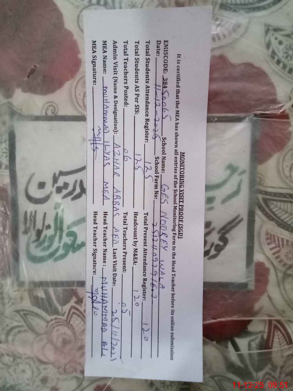 | EMIS Code: 38450065 | Name of School: GES NOOREY WALA | |||
