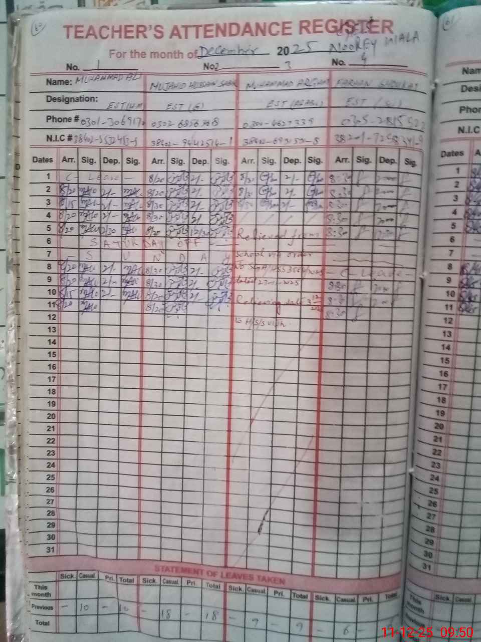| Name: MU**** AL**** Designation: (School Headmaster's/Headmistress's) EST (GENRAL) Phone/Cell Number: 03**** |
