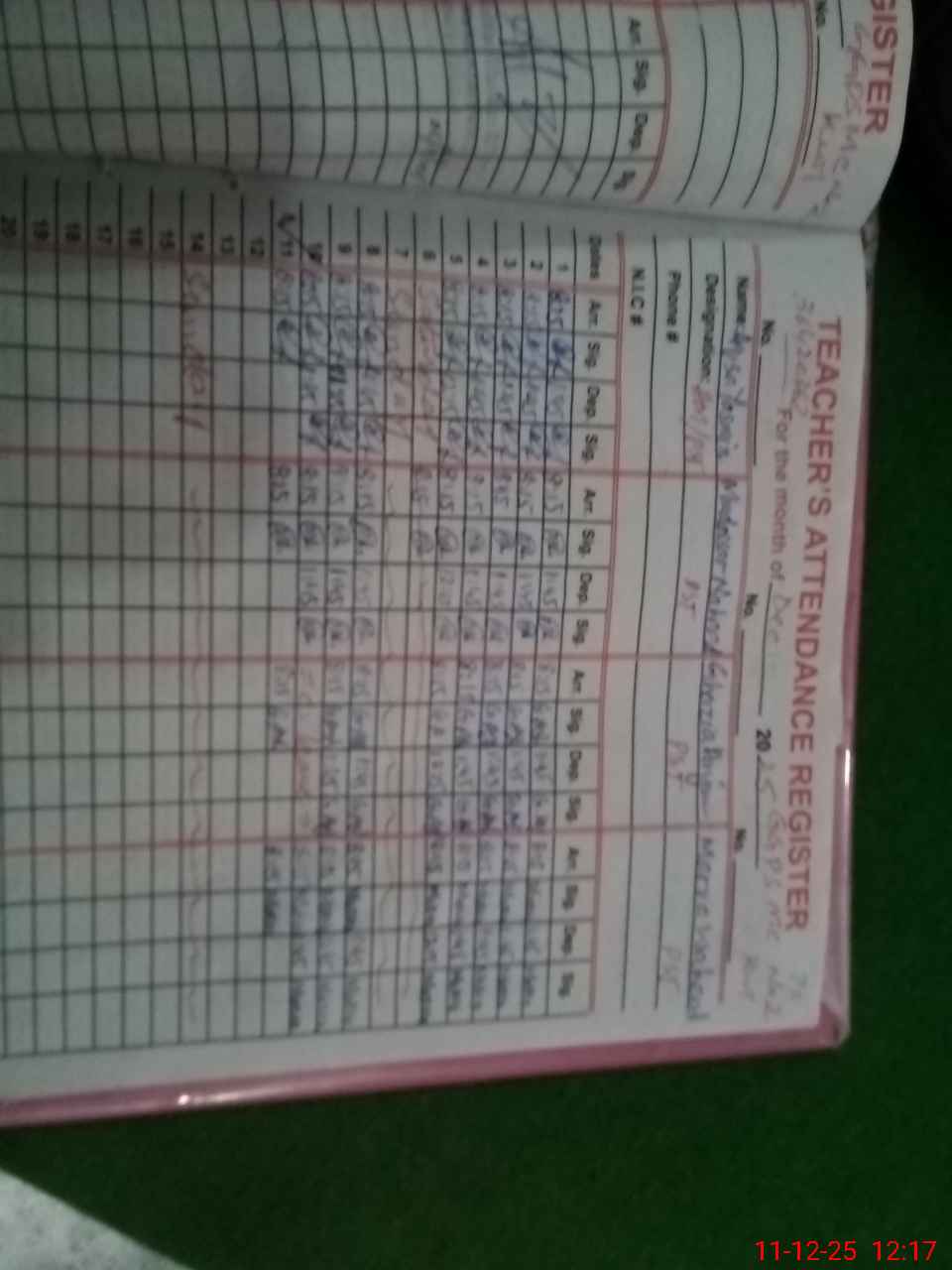 | CNIC | Full Name | Designation | R/C | Absence During Last Calender Month |