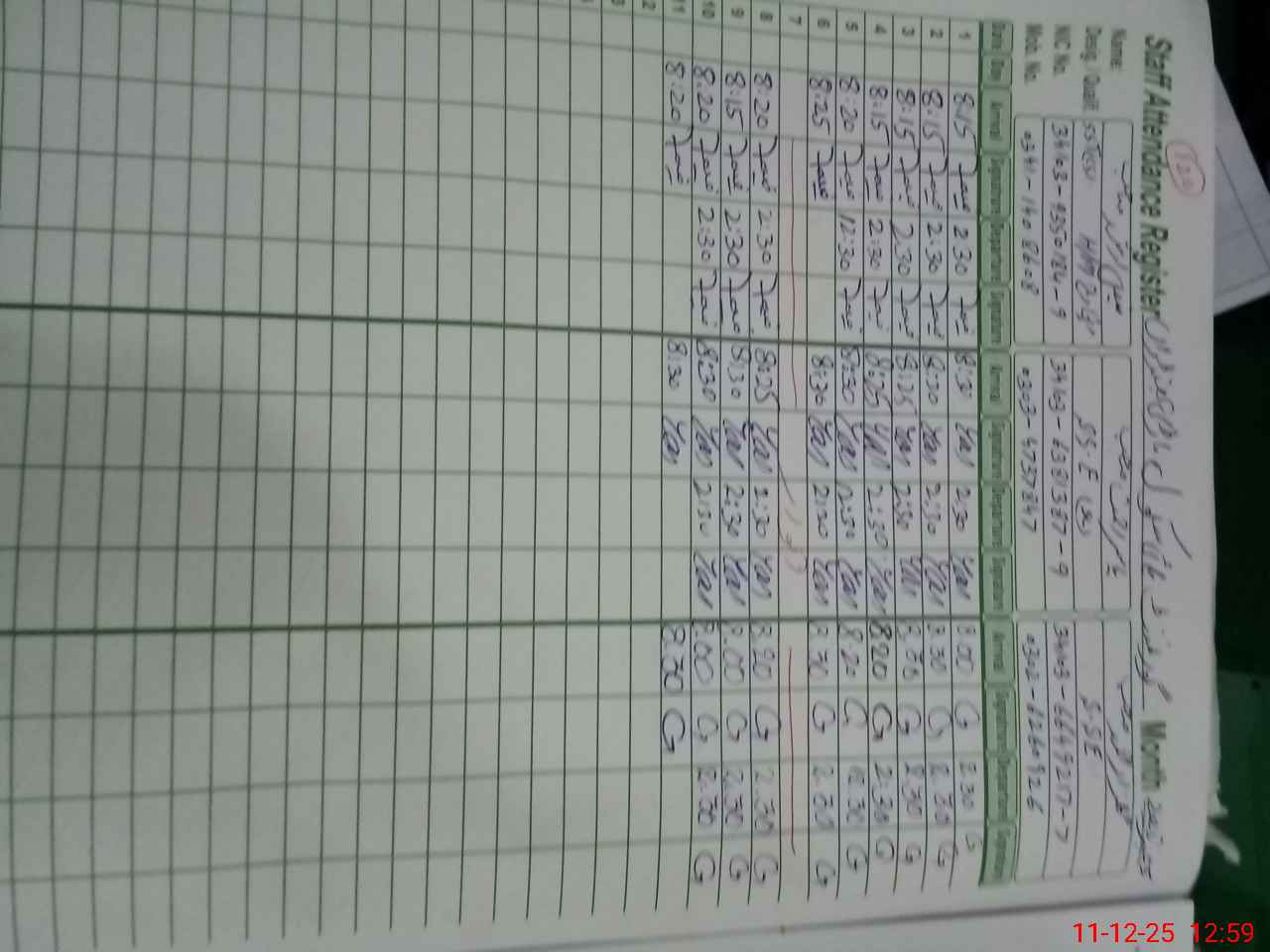 | CNIC | Full Name | Designation | R/C | Absence during last cal. month |