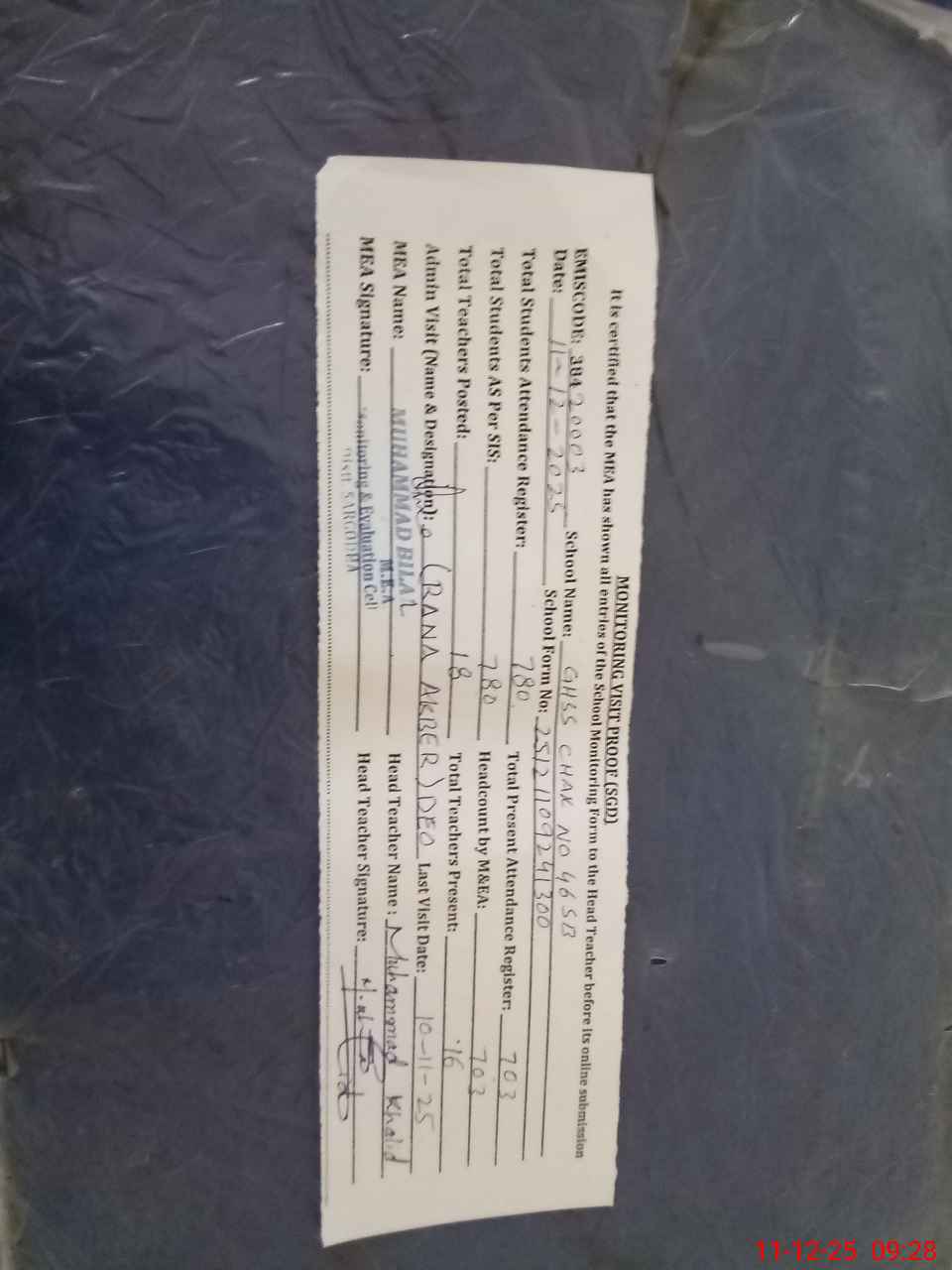 | EMIS Code: 38420003 | Name of School: GHSS CHAK NO.46 SB | |||