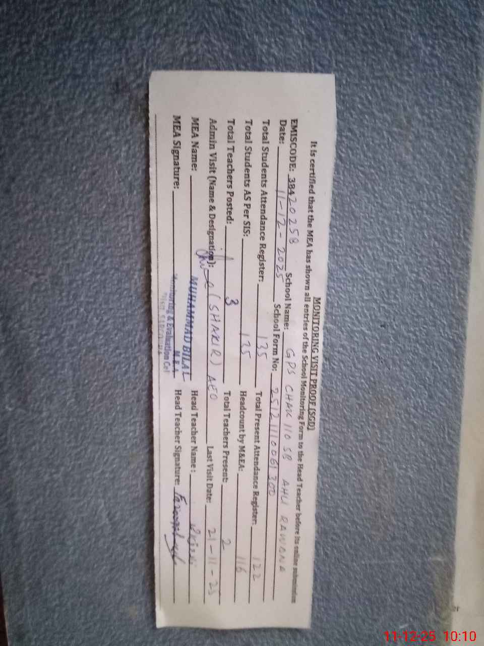 | EMIS Code: 38420258 | Name of School: GPS AHLI RAWAN CHAK NO. 110 SB | |||