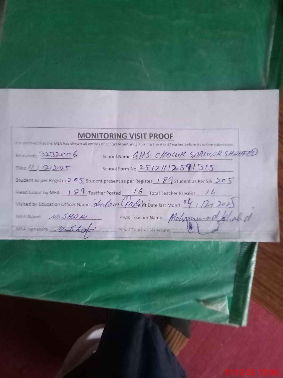 | EMIS Code: 32320065 | Name of School: GHS CHOWK SARWAR SHAHEED | |||