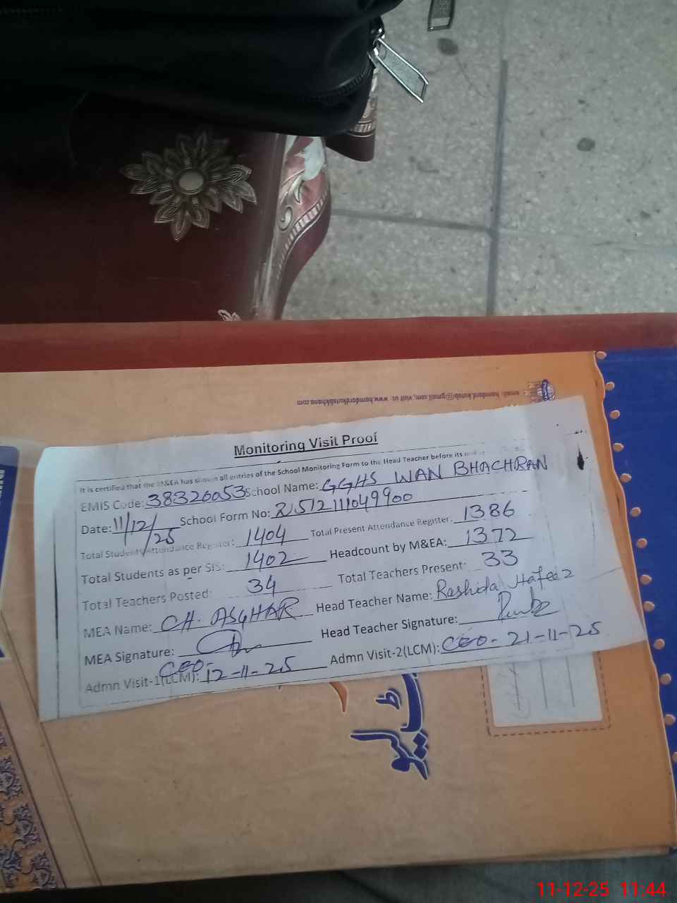 | EMIS Code: 38320053 | Name of School: GGHS WAN BHACHRAN | |||