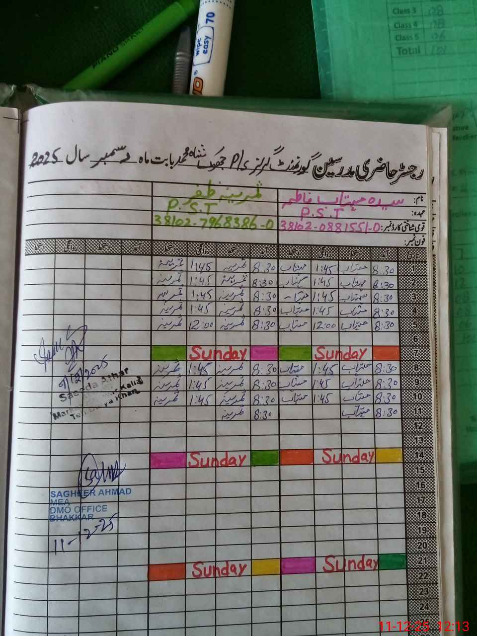 | Name: BU**** MU**** Designation: (School Headmaster's/Headmistress's) PST Phone/Cell Number: 03**** |