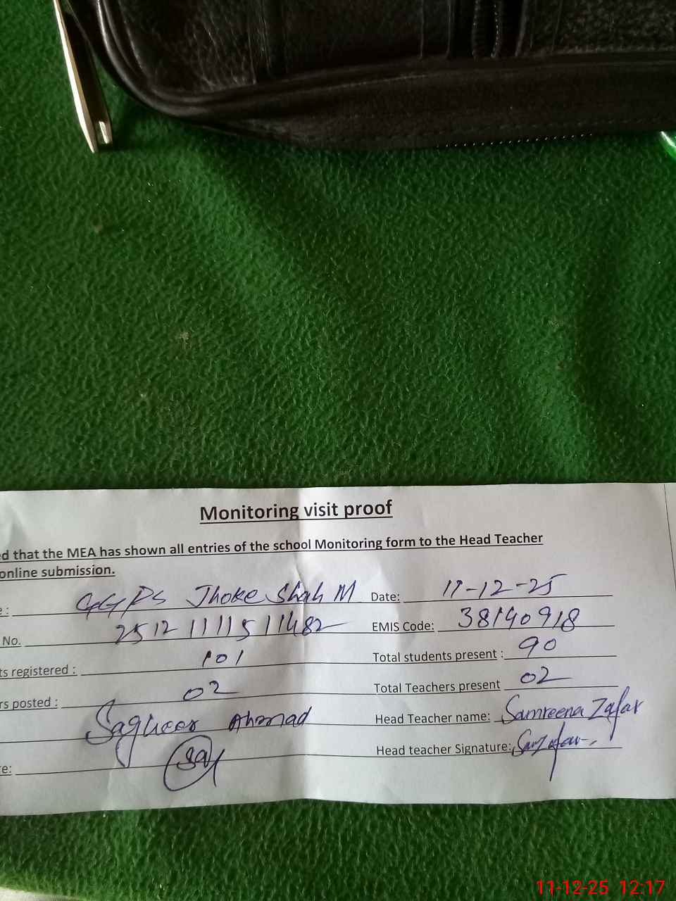 | EMIS Code: 38140918 | Name of School: GGPS JHOKE SHAH MUHAMMAD | |||