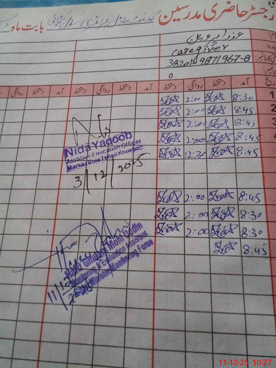 | Name: Ri**** Na**** Designation: (School Headmaster's/Headmistress's) PST Phone/Cell Number: 03**** |