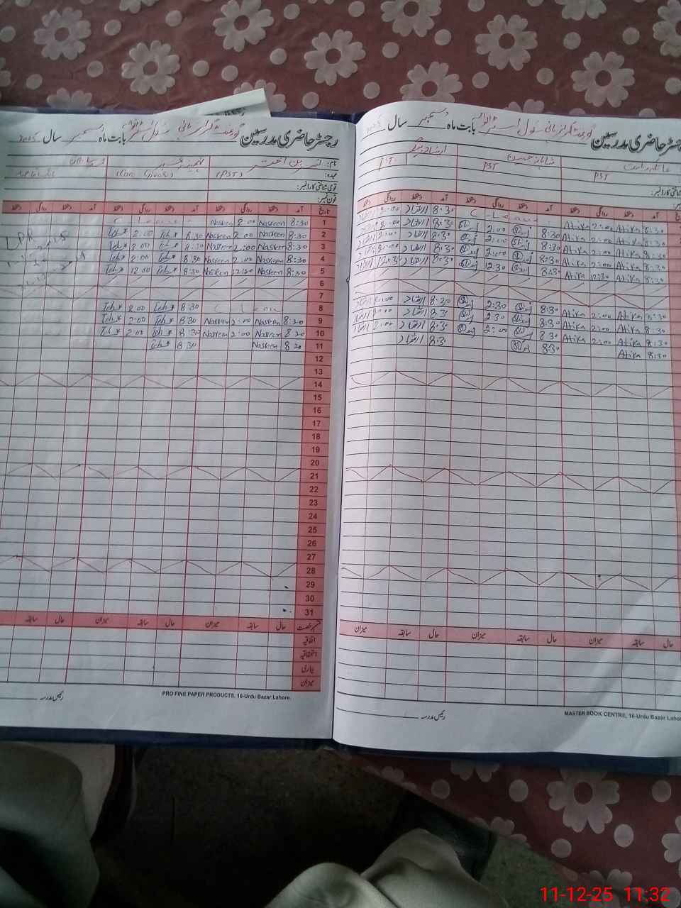 | CNIC | Full Name | Designation | R/C | Absence During Last Calender Month |