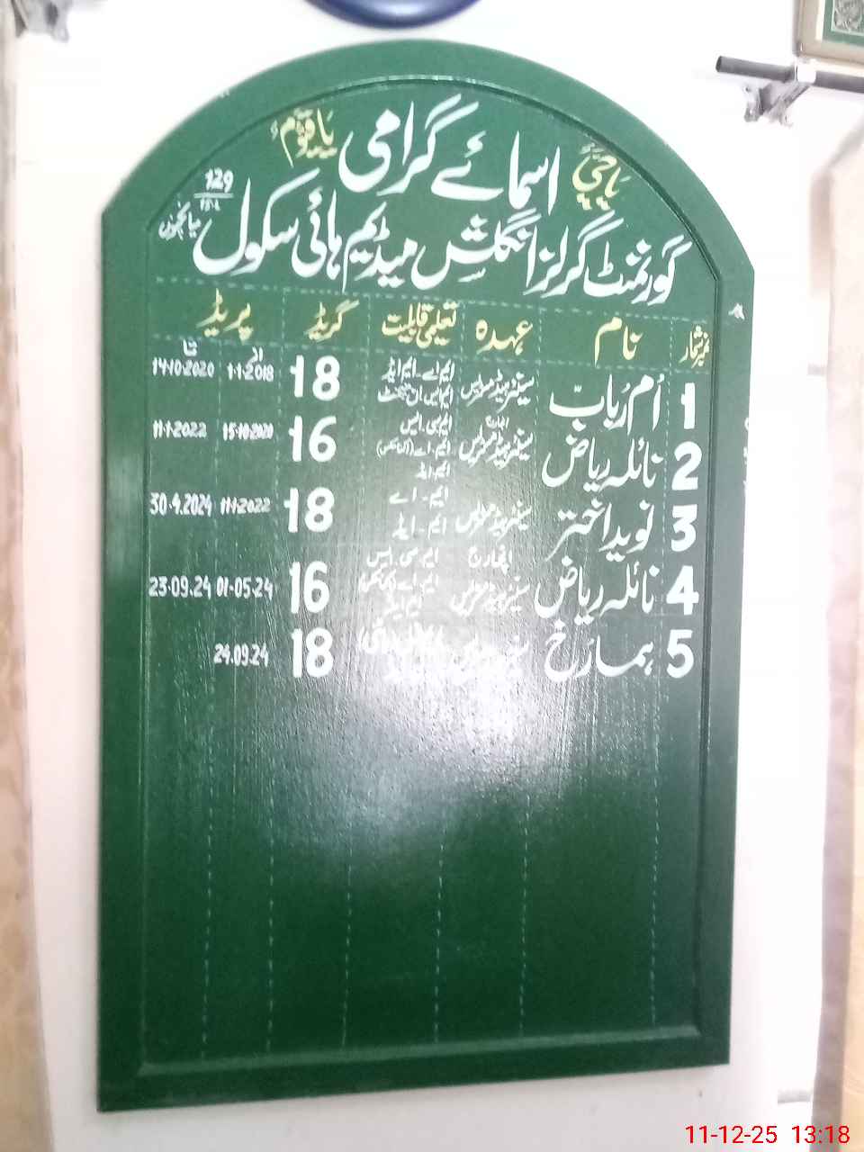 | Name: Hu**** Ru**** Designation: (School Headmaster's/Headmistress's) Head Mistress Phone/Cell Number: 03**** |