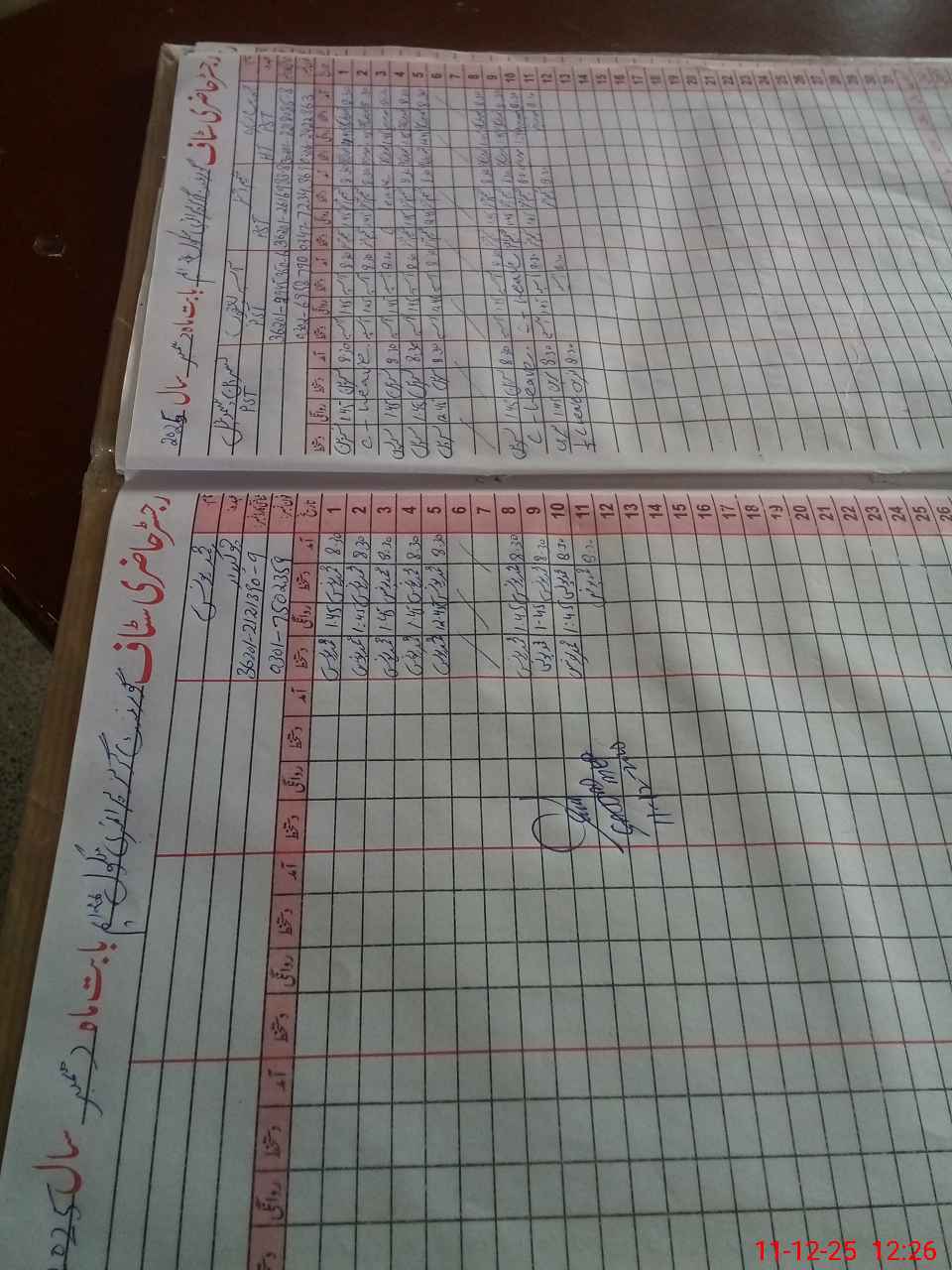 | CNIC | Full Name | Designation | R/C | Absence During Last Calender Month |