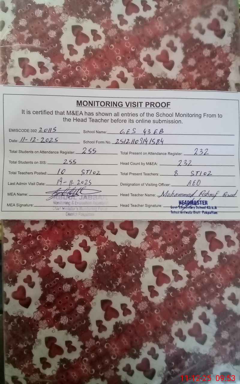 | EMIS Code: 39220115 | Name of School: GES 43 EB | |||