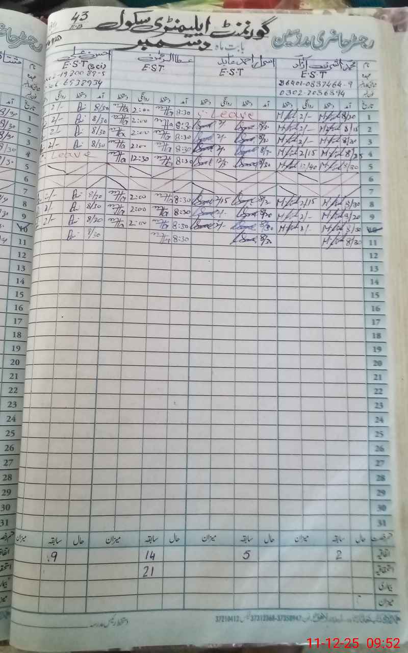 | Name: MAS**** AZ**** Designation: (School Headmaster's/Headmistress's) EST Phone/Cell Number: 03**** |