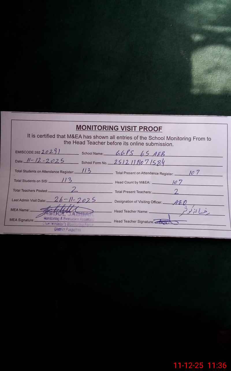 | EMIS Code: 39220291 | Name of School: GGPS 65-A/EB | |||