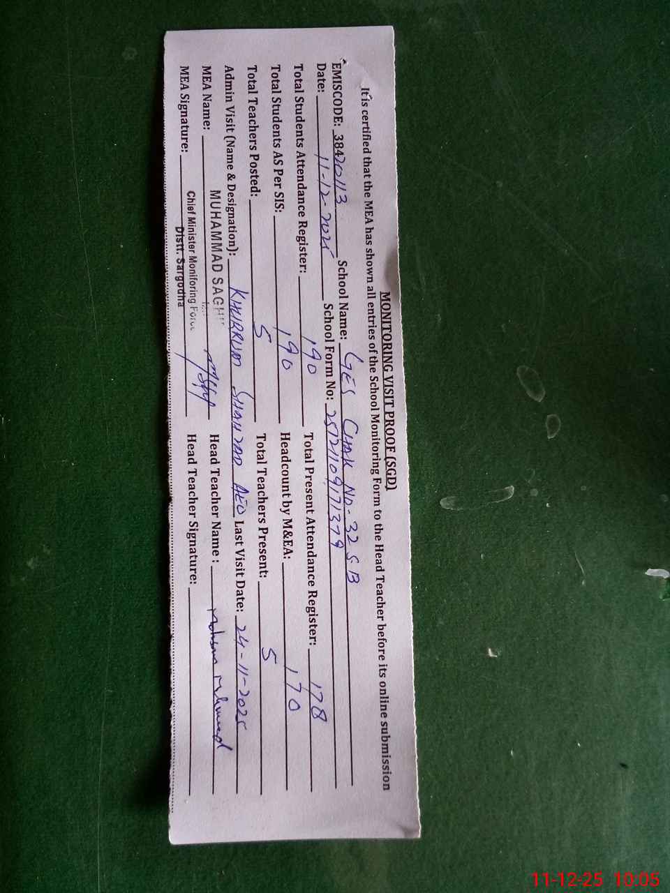 | EMIS Code: 38420113 | Name of School: GES CHAK NO.32 SB | |||