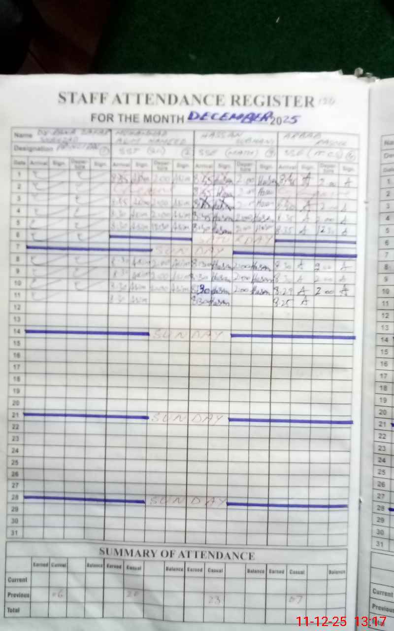 | Attendance Register | Head Teacher | MEA with School | Visit Proof |