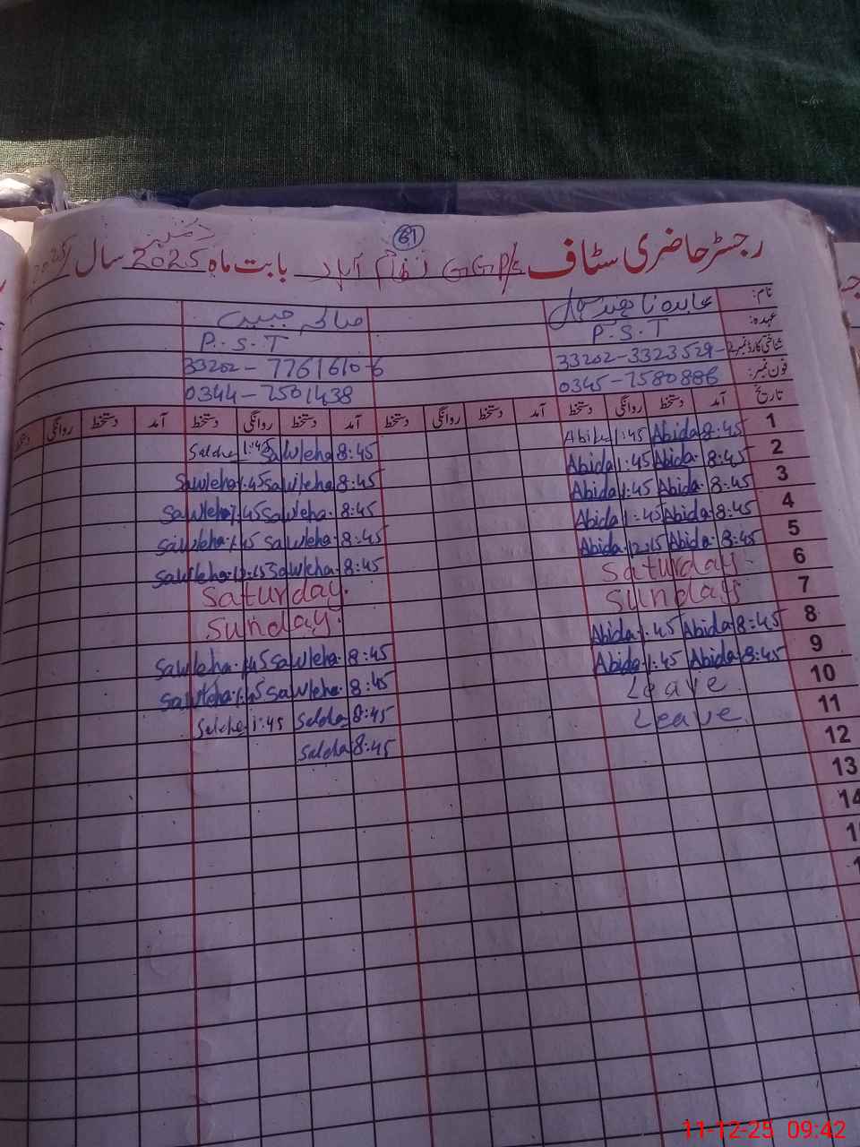 | 33**** | Sa**** Ab**** | PST Science/Maths | Regular | 0 | 0 | 0 | 0 | 0 | 0 | 0 | 0 | 0 | Maternity |