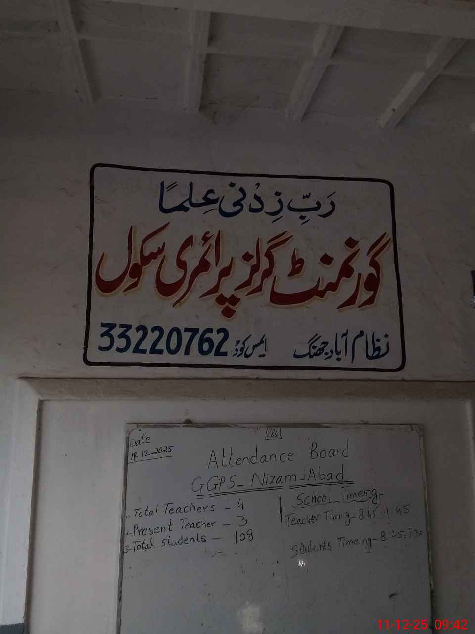 | EMIS Code: 33220762 | Name of School: GGPS NIZAM ABAD | |||