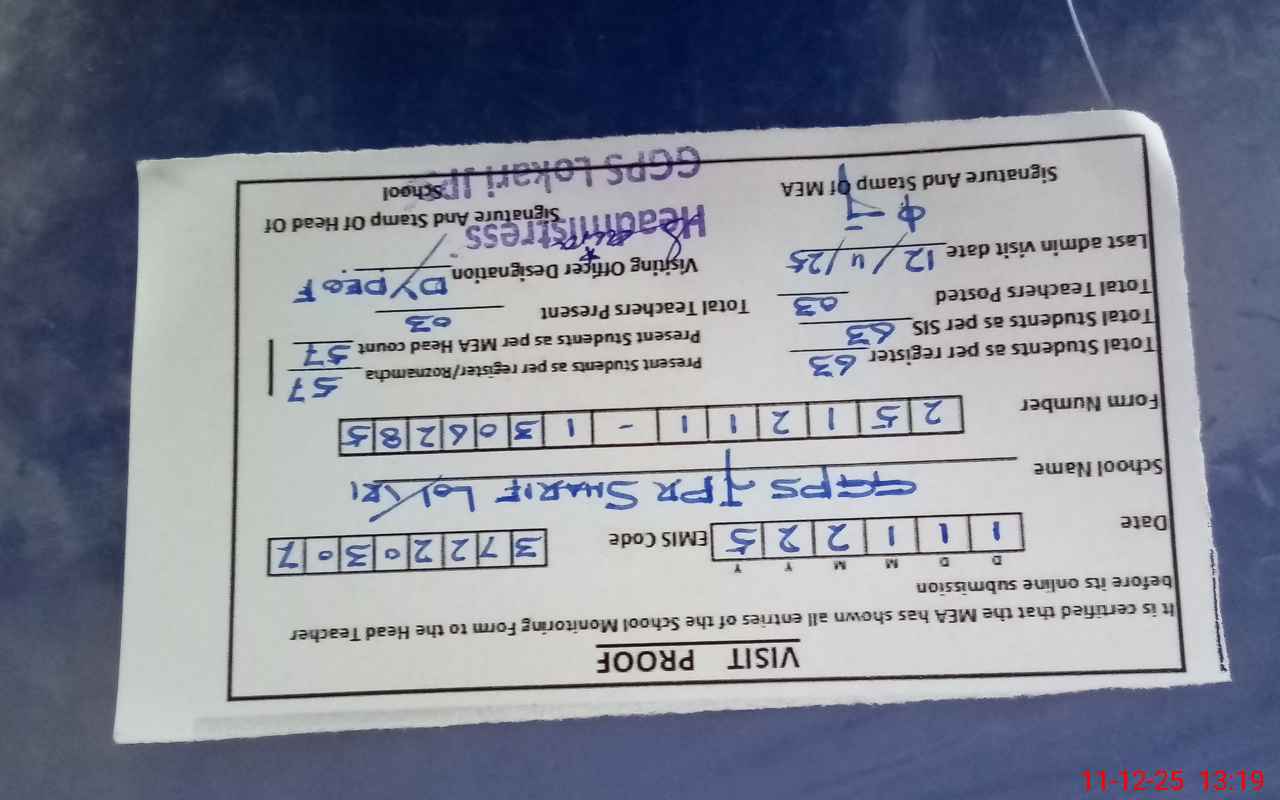 | EMIS Code: 37220307 | Name of School: GGPS JALIL PUR SHARIF LOKRI | |||