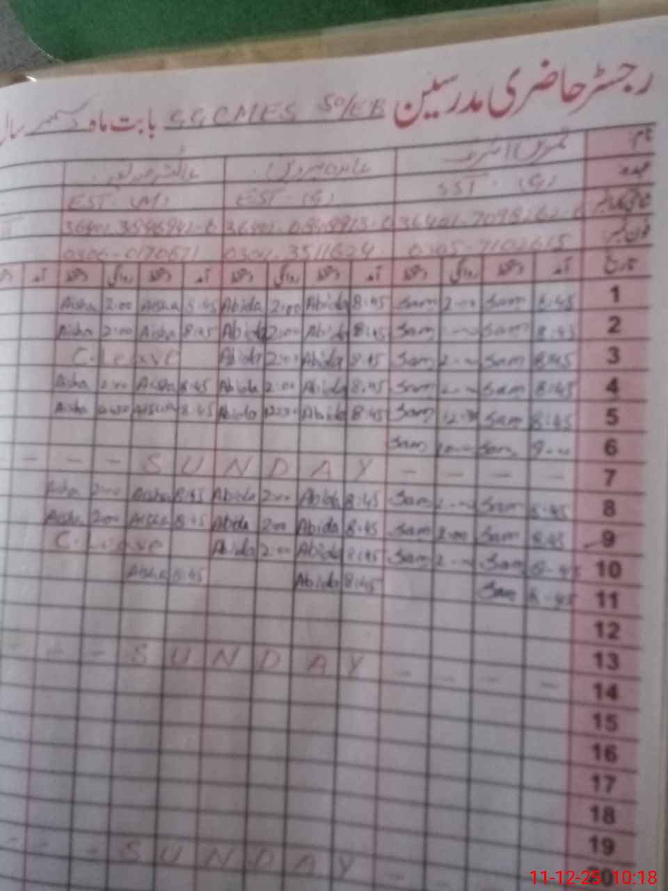 | Name: SA**** AS**** Designation: (School Headmaster's/Headmistress's) SST (GENERAL) Phone/Cell Number: 03**** |