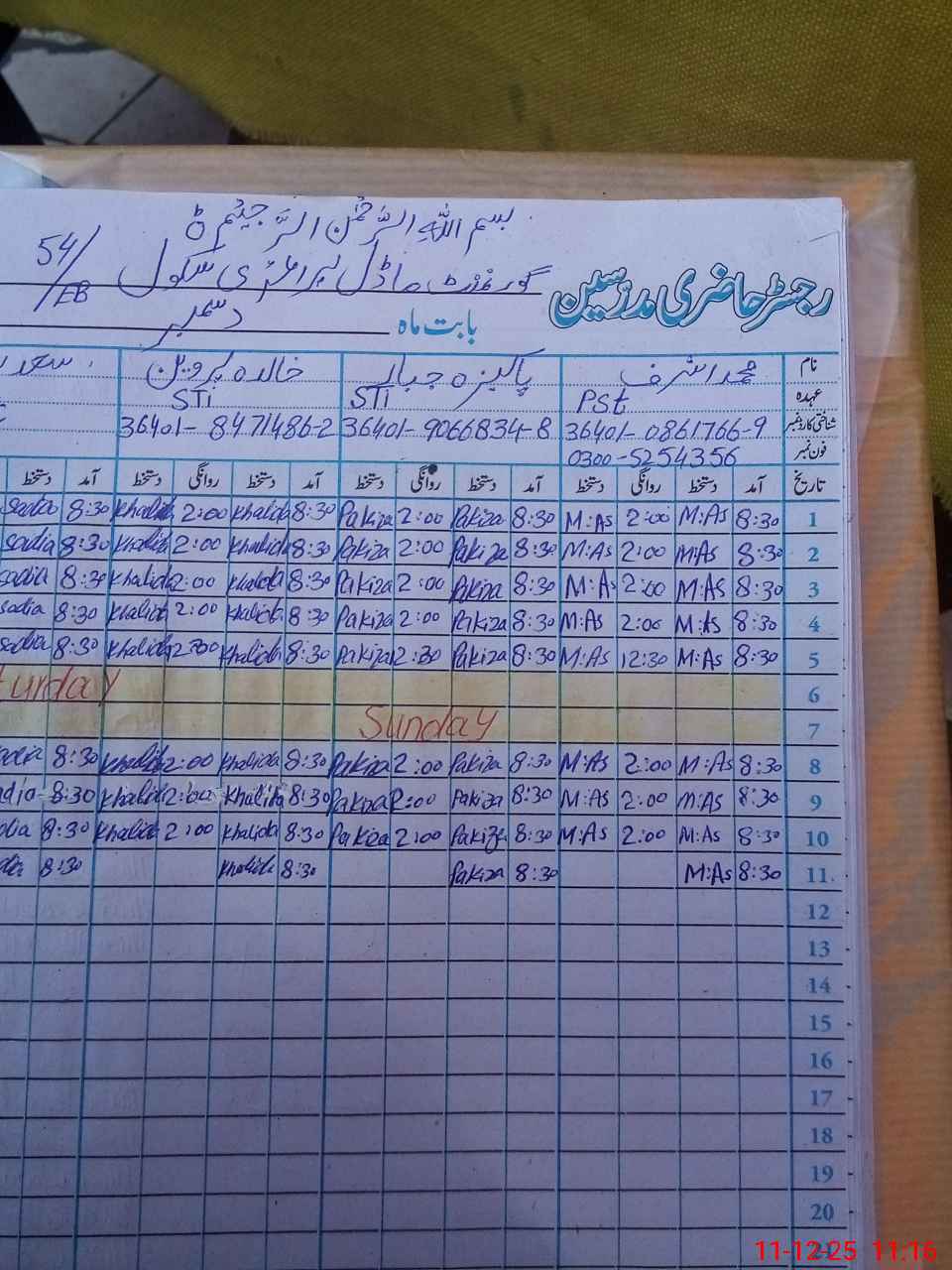 | Name: MU**** AS**** Designation: (School Headmaster's/Headmistress's) PST Phone/Cell Number: 03**** |