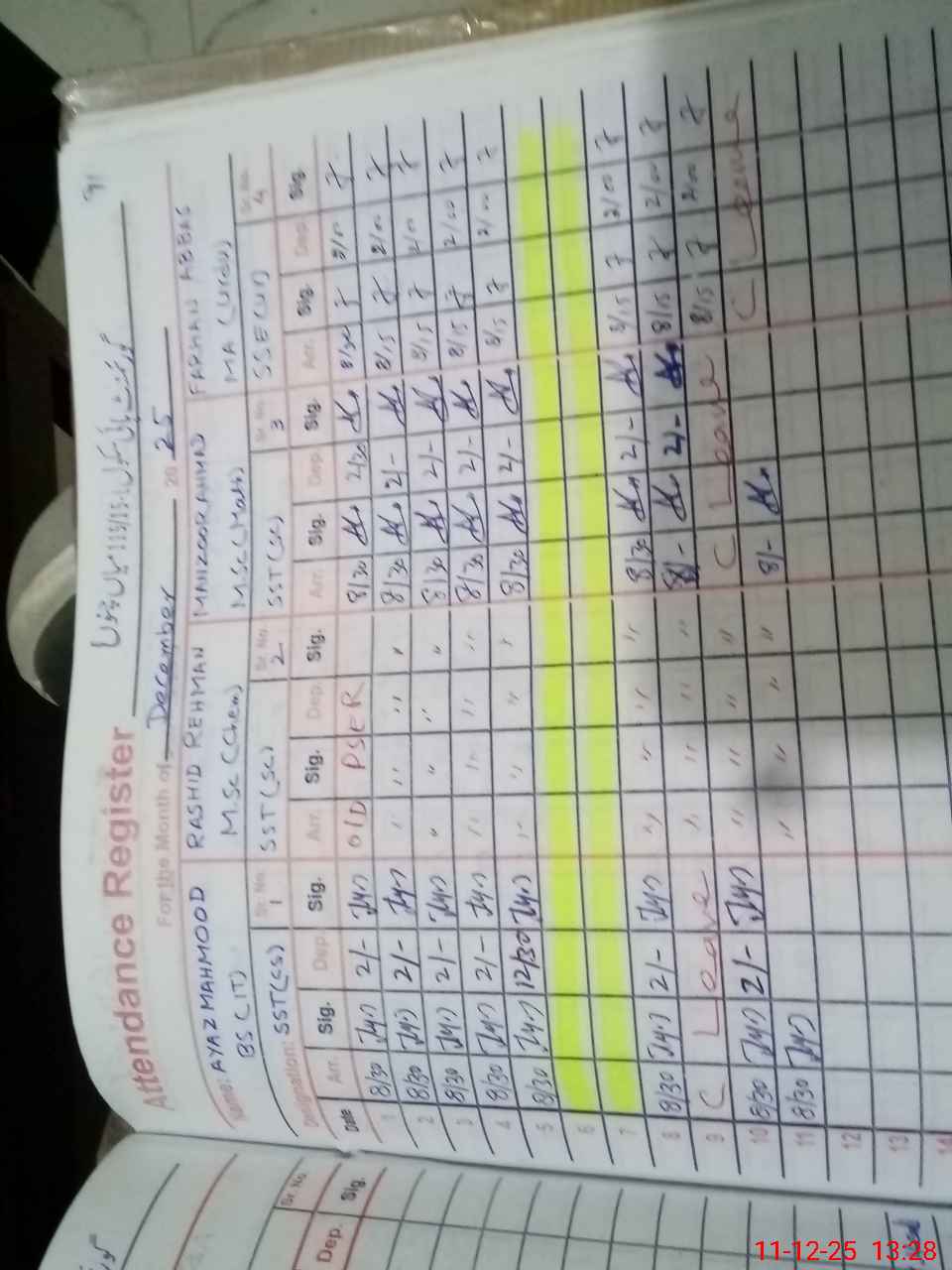 | CNIC | Full Name | Designation | R/C | Absence During Last Calender Month |