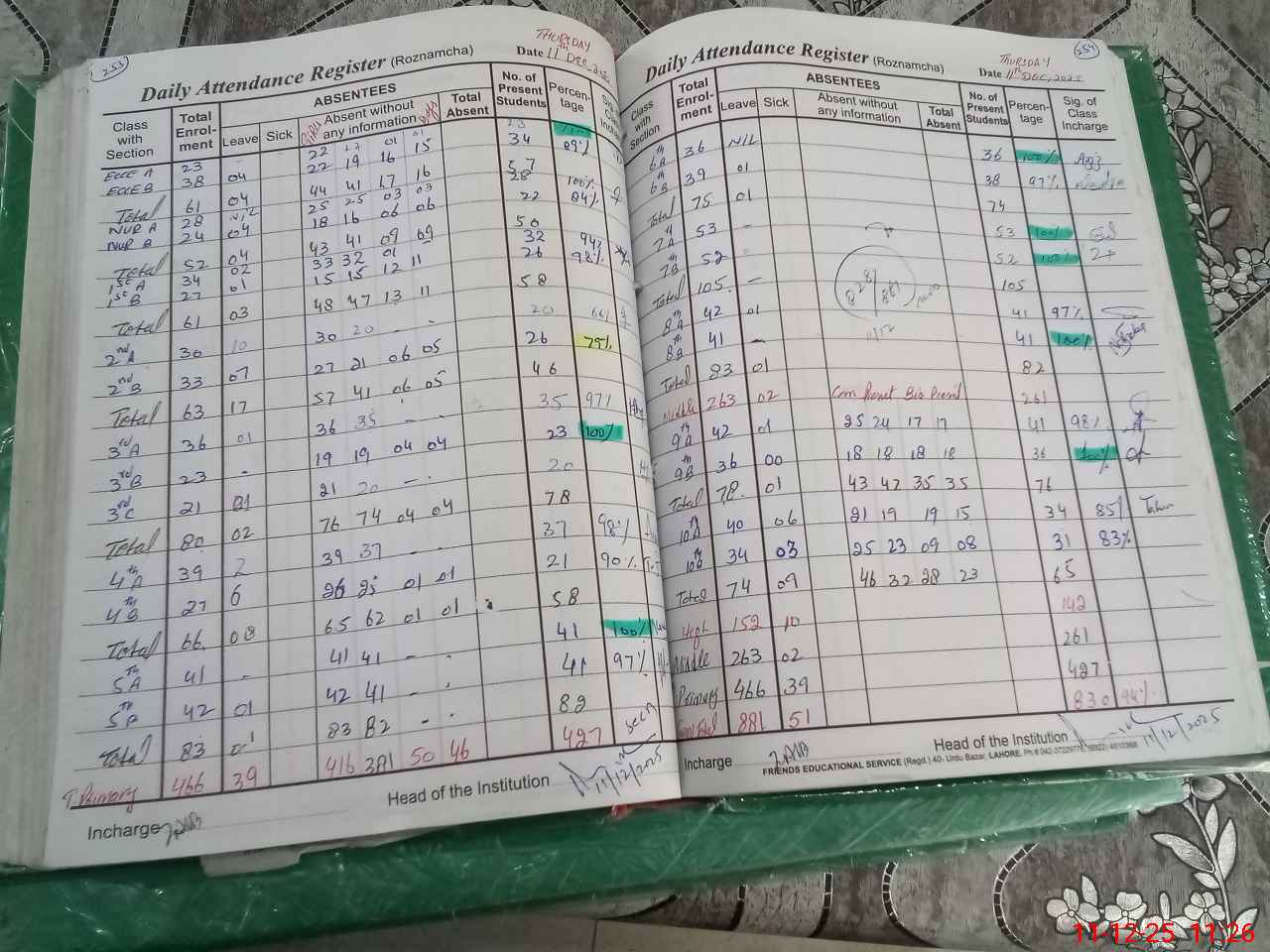 | Attendance Register | Head Teacher | MEA with School | Visit Proof |