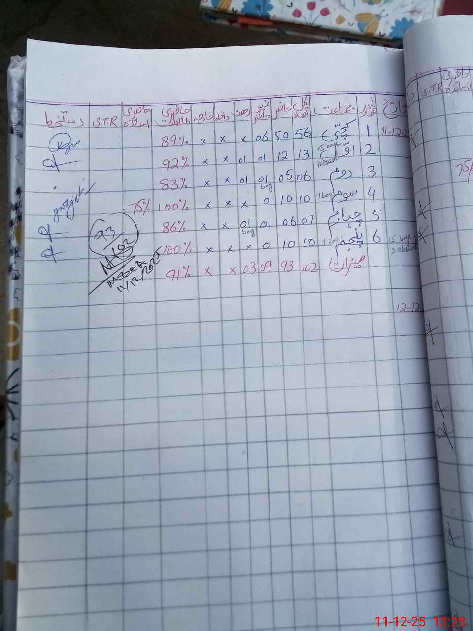 | Total Students Present | 0 | 0 | 12 | 5 | 10 | 6 | 10 | 93 | ||||||||