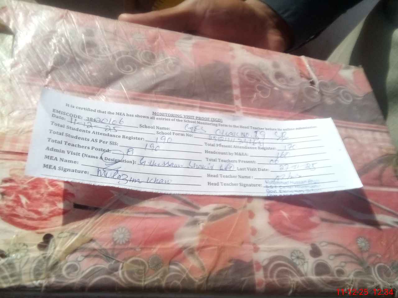 | Name: MU**** HU**** Designation: (School Headmaster's/Headmistress's) SST Phone/Cell Number: 03**** |