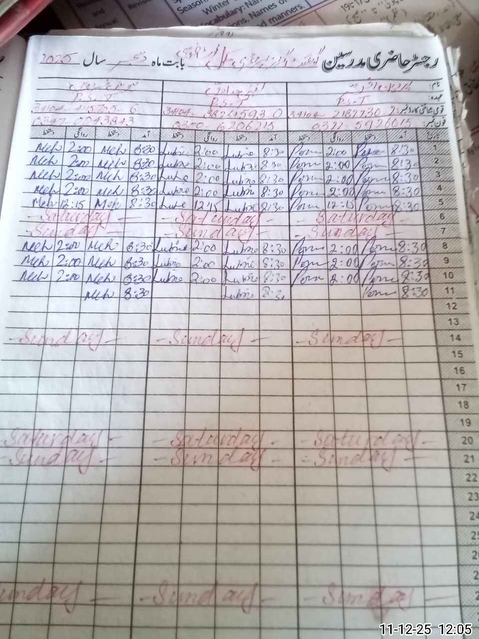 | CNIC | Full Name | Designation | R/C | Absence During Last Calender Month |