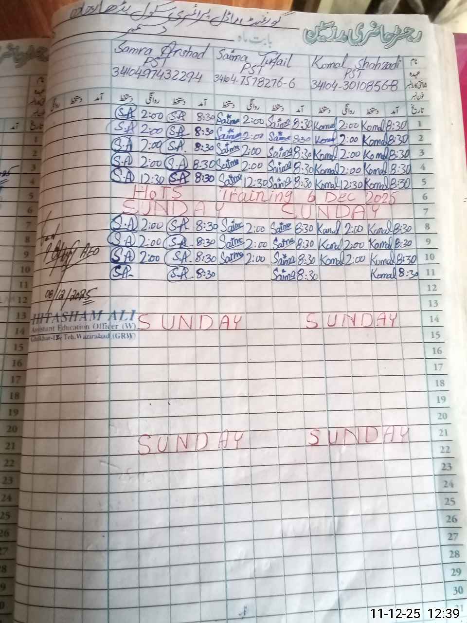 | CNIC | Full Name | Designation | R/C | Absence During Last Calender Month |