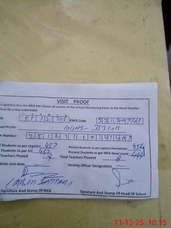 | EMIS Code: 33120741 | Name of School: GGHS CHAK 353 GB | |||