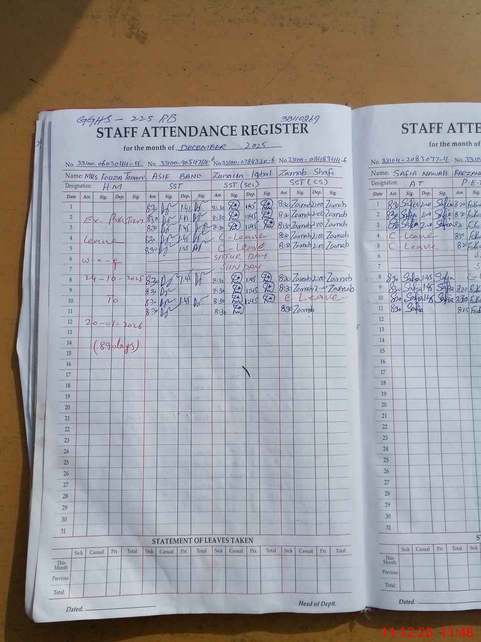 | Leave | Duty | Absent | Maternity | Medical | Ex- Pak |
