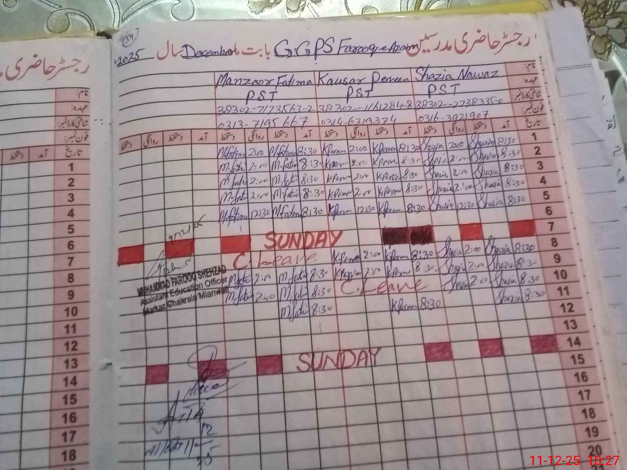 | Name: Sh**** Na**** Designation: (School Headmaster's/Headmistress's) Pst Phone/Cell Number: 03**** |