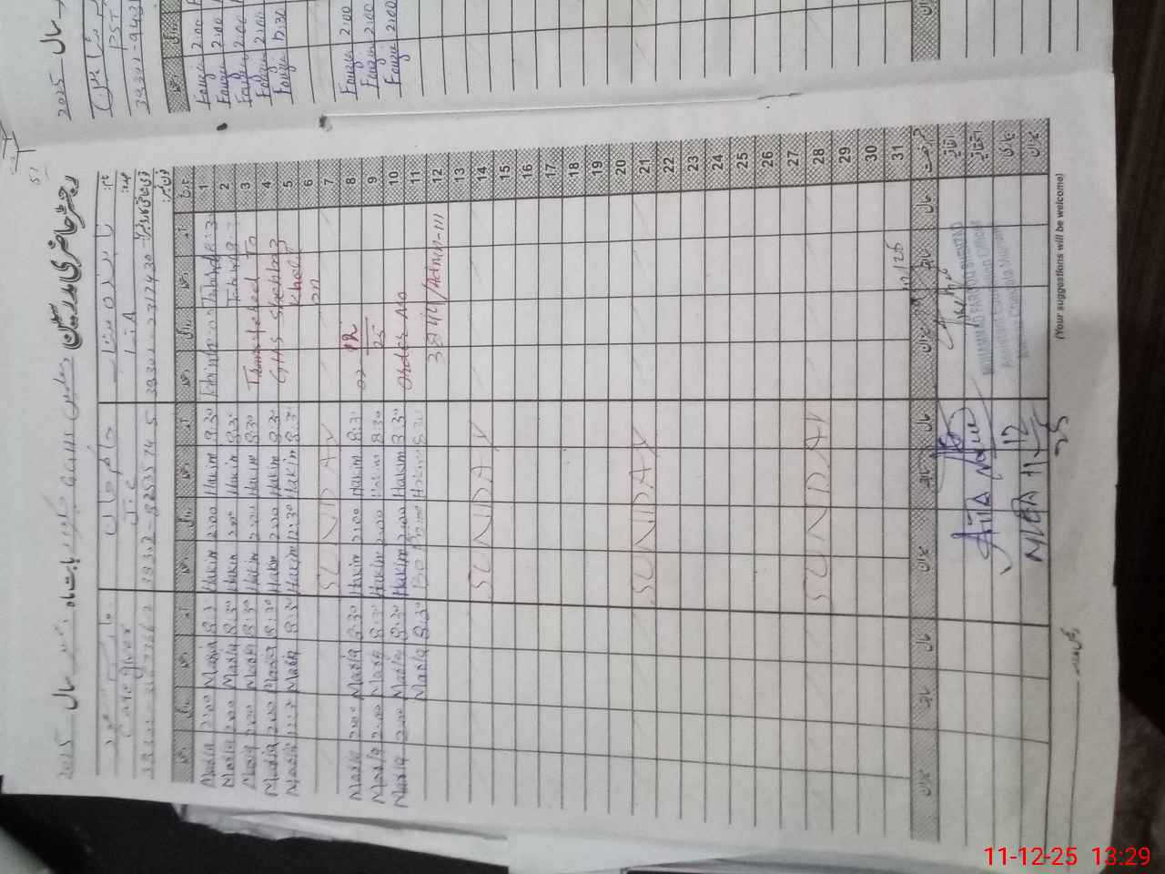 | CNIC | Full Name | Designation | R/C | Absence During Last Calender Month |