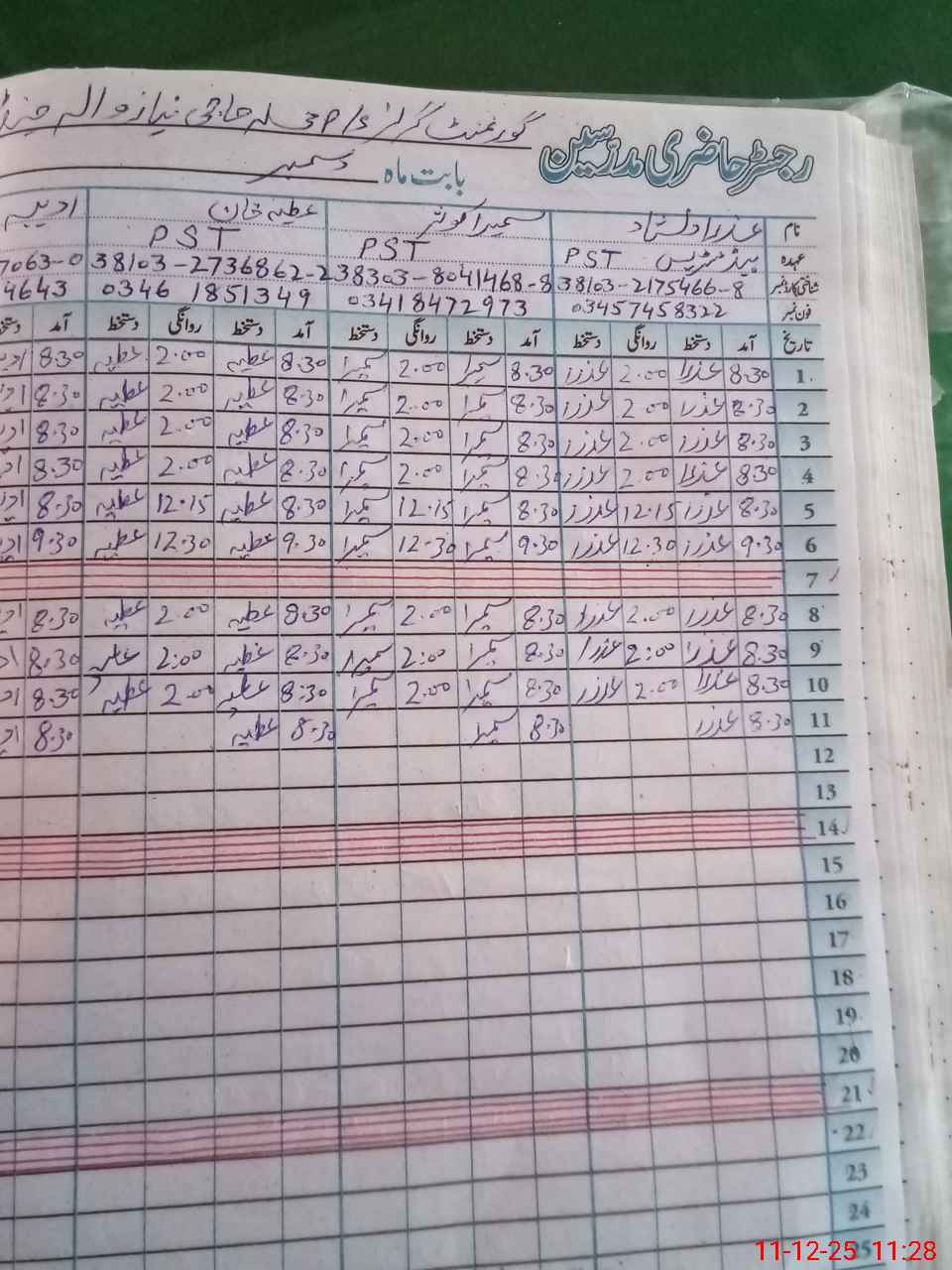 | Name: AZ**** DI**** Designation: (School Headmaster's/Headmistress's) PTC/JV Phone/Cell Number: 03**** |