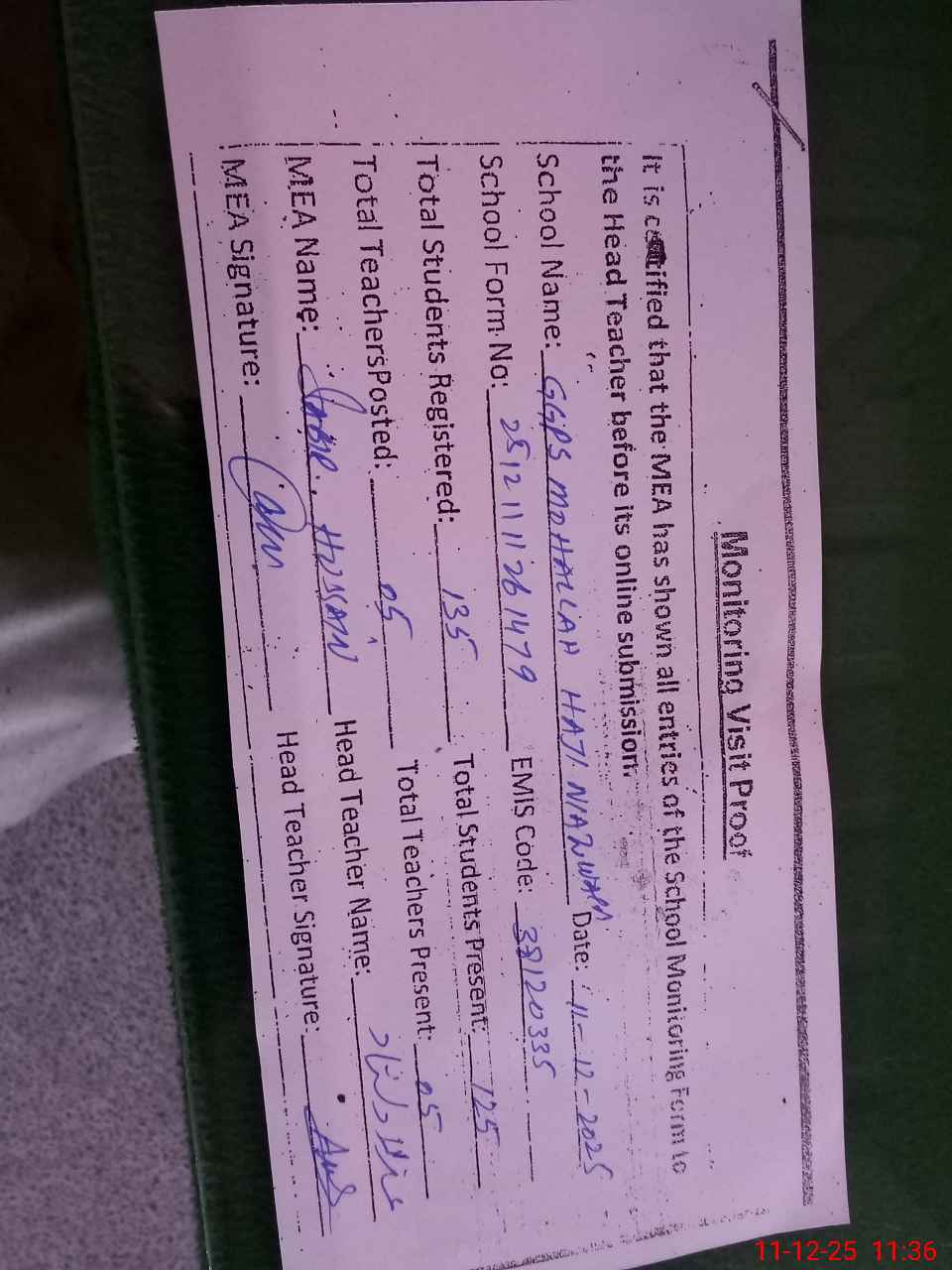 | EMIS Code: 38120335 | Name of School: GGPS MOHALLAH HAJI NIAZ WALA | |||