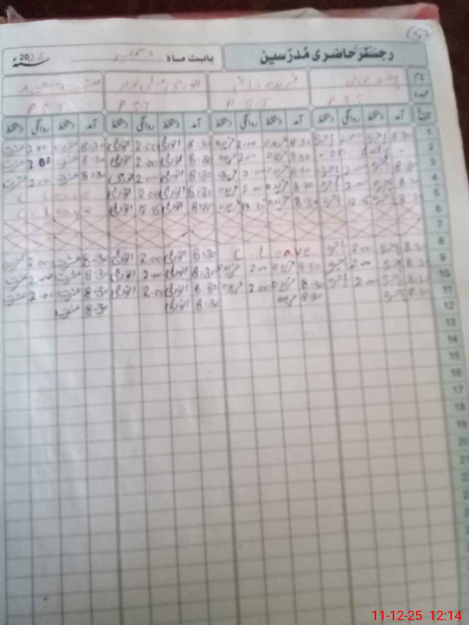 | CNIC | Full Name | Designation | R/C | Absence During Last Calender Month |