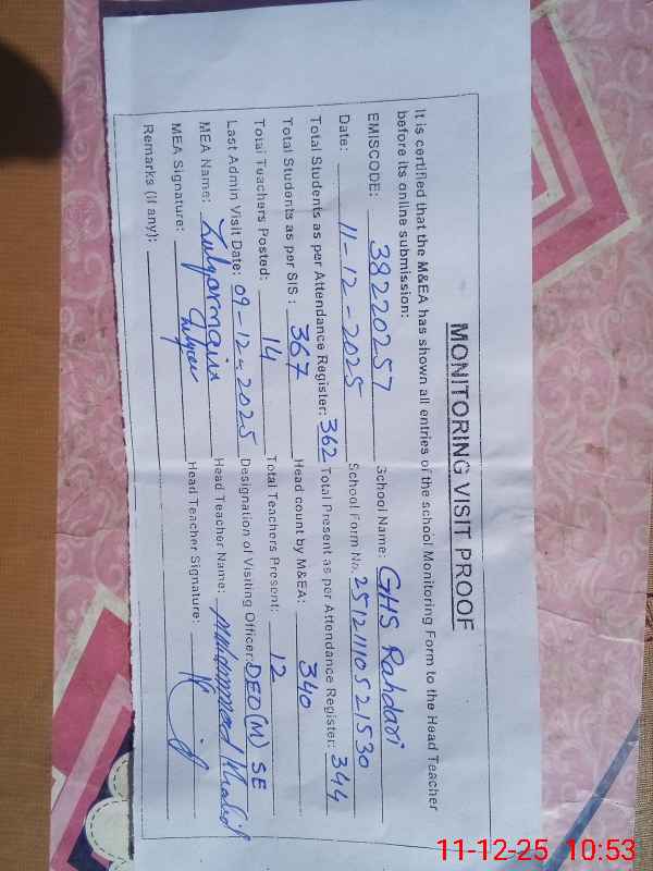 | EMIS Code: 38220257 | Name of School: GHS RAHDARI | |||