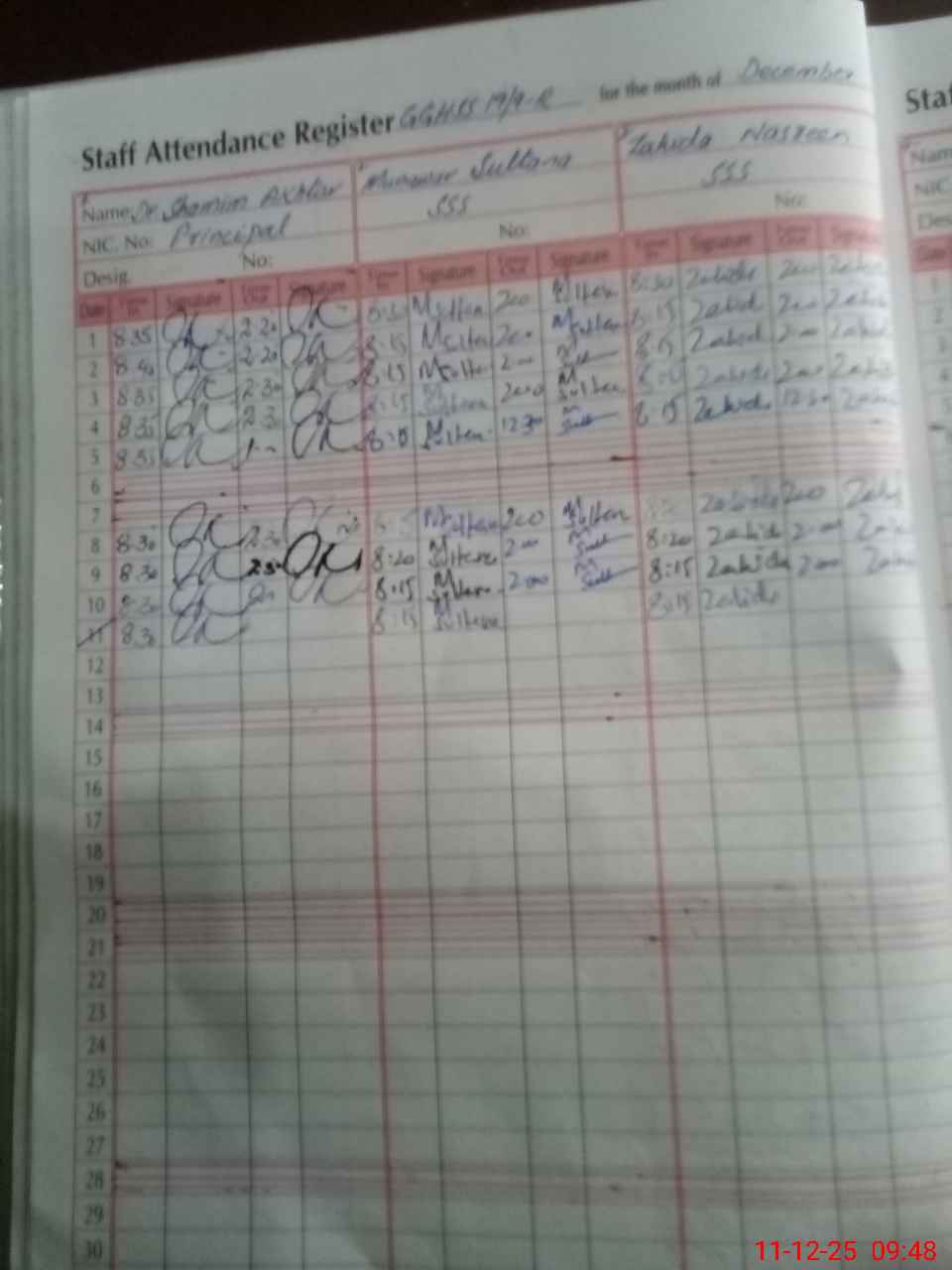 | CNIC | Full Name | Designation | R/C | Absence During Last Calender Month |
